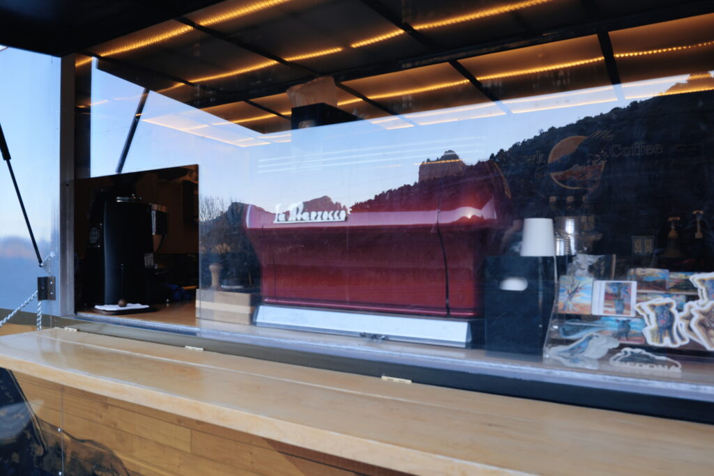 어라… 제법 맛 있다. 이 척박한 환경에서 이런 맛을 내다니 충격적이다. 주인으로 보이는 바리스타에게 이것 저것 물어보니, 장비는 전부 리퍼비쉬된 걸 구입했고, 올 해 봄 부터 운영을 시작했다고 한다. 원두는 세도나의 로컬 로스터에서 받는 다고 한다. 브라질을 위주로 한 남미 계열 2종 정도와 에티오피아가 10-20% 블랜딩 되어 있지 않을까 추측해 본다. 카페를 돌아다니다 보면 이러한 상상도 재미 있다.