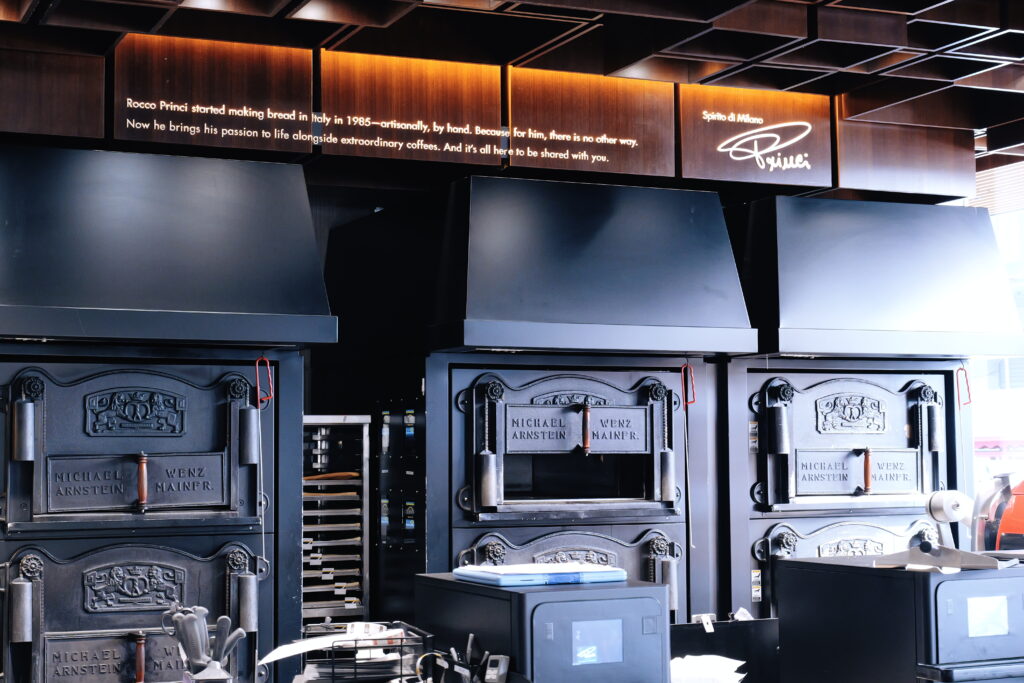 그도 그럴것이 이탈리아 밀라노의 유명한 베이커리인 ‘ROCCO PRINCI'(https://www.princi.com/rocco-princi) 가 이 곳에서 빵을 만들고 있으니 그 맛은 먹어보지 않아도 인정해야 할 것 같습니다. 전통방식 그대로 구워낸다 라고 큰 소리로 얘기하듯 떡 하니 자리잡고 있는 세대의 화덕이 인상 깊습니다.